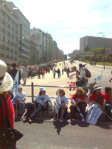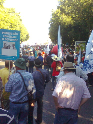 Estando os critérios editoriais do Público acima de qualquer suspeita, ficar-me-ia mal ver neste tratamento jornalístico algo mais do que a preocupação de não mostrar pessoas vestidas sem grande cuidado, bastas vezes despenteadas e algumas esbaforidas, que o dia esteve quente. Admito também que o jornal de referência – movido pela patriótica intenção de ocultar perante as agências de rating que, afinal, em vez de trabalharmos para debelar a crise, andamos a desfilar pelas avenidas de Lisboa – terá preferido mostrar apenas pequenos grupos, de modo nenhum representativos de grandes massas de trabalhadores, que, esses, não estão para desbaratar o seu empenhado esforço de recuperação nacional em acções estéreis de protesto. A corroborar esta minha convicção aí está, de resto, o texto da reportagem, que se espraia em ponderações e cômputos de observadores e especialistas independentes em contagens, para reconduzir o exagero do número avançado por Carvalho da Silva (mais de 300 mil) a cifras muito mais decentes, quais seriam as de 110, 130, talvez – máximo dos máximos – 150 mil.